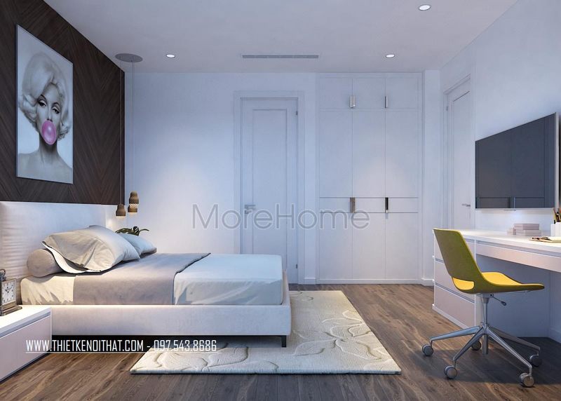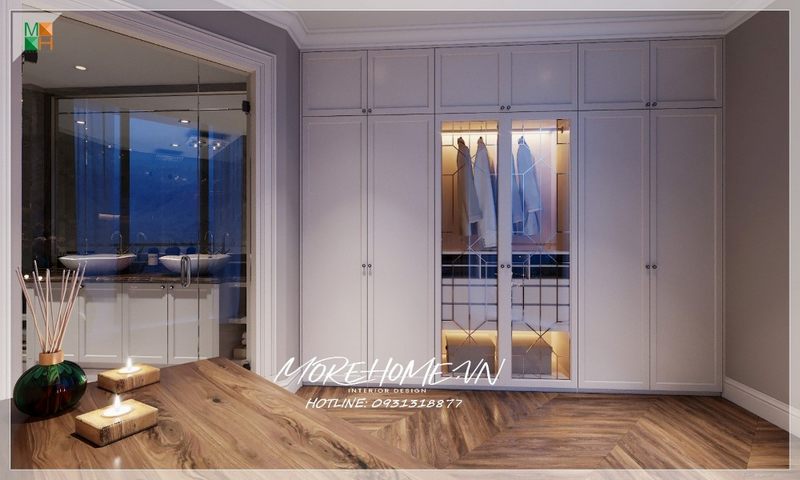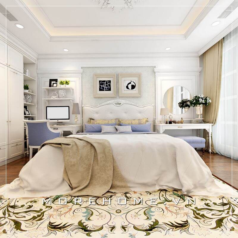 Một không gian phòng ngủ thiết kế kết hợp độc đáo giữa hai phong cách hiện đại và tân cổ điển, tinh tế sang trọng phù hợp cho chung cư, nhà phố, biệt thự.