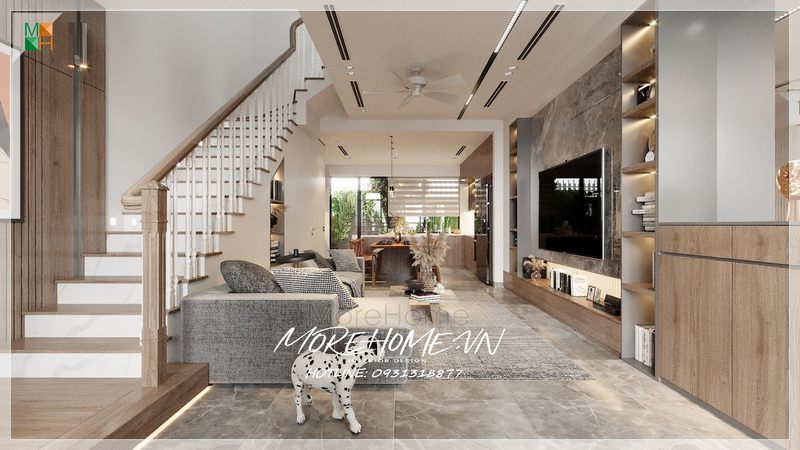 Mẫu thiết kế phòng khách nhà phố đẹp với nội thất hiện đại, tiện nghi tạo cảm giác thông thoáng cho căn nhà