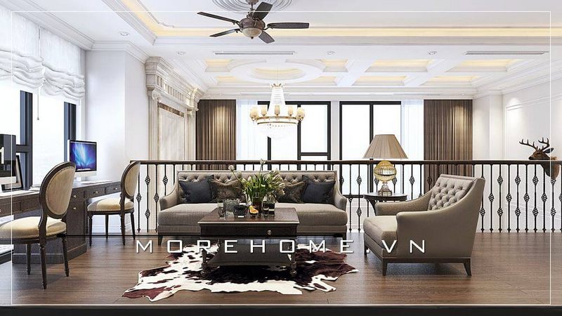 Đường nét tân cổ điển được thể hiện trên mọi không gian phòng khách biệt thự