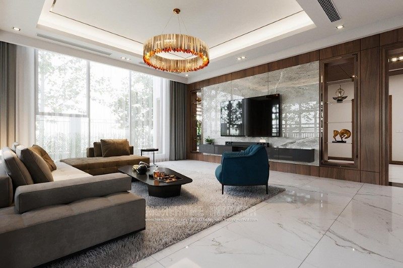 Thiết kế phòng khách biệt thự hiện đại mang đến sự sang trọng và tinh tế cho không gian sống của tổ ấm gia đình Việt.