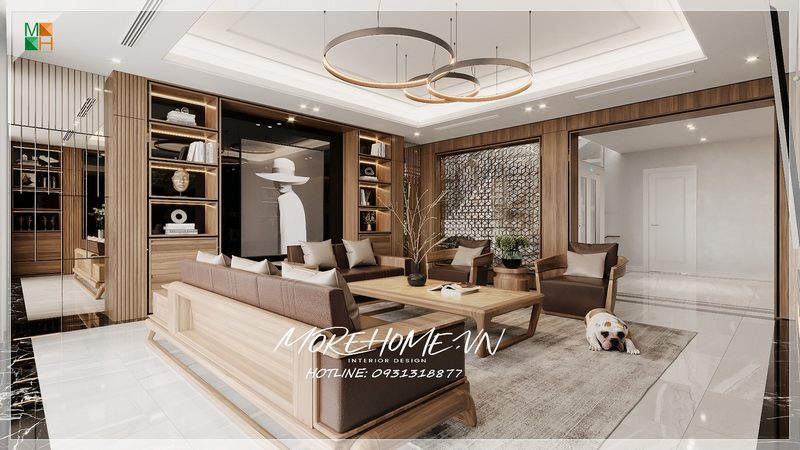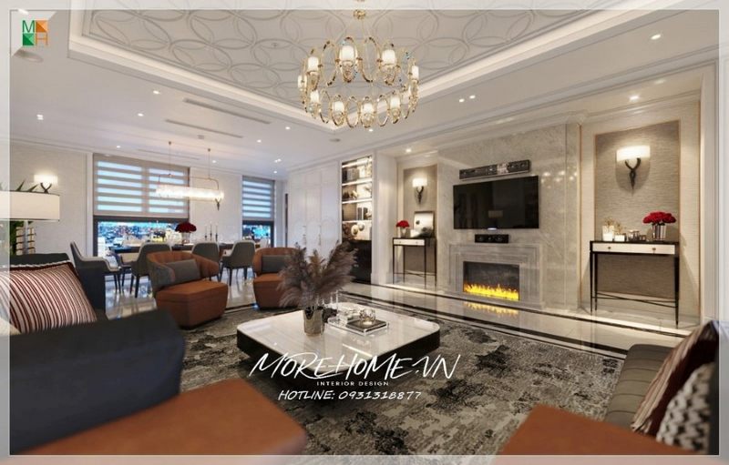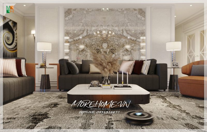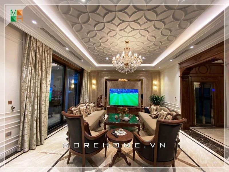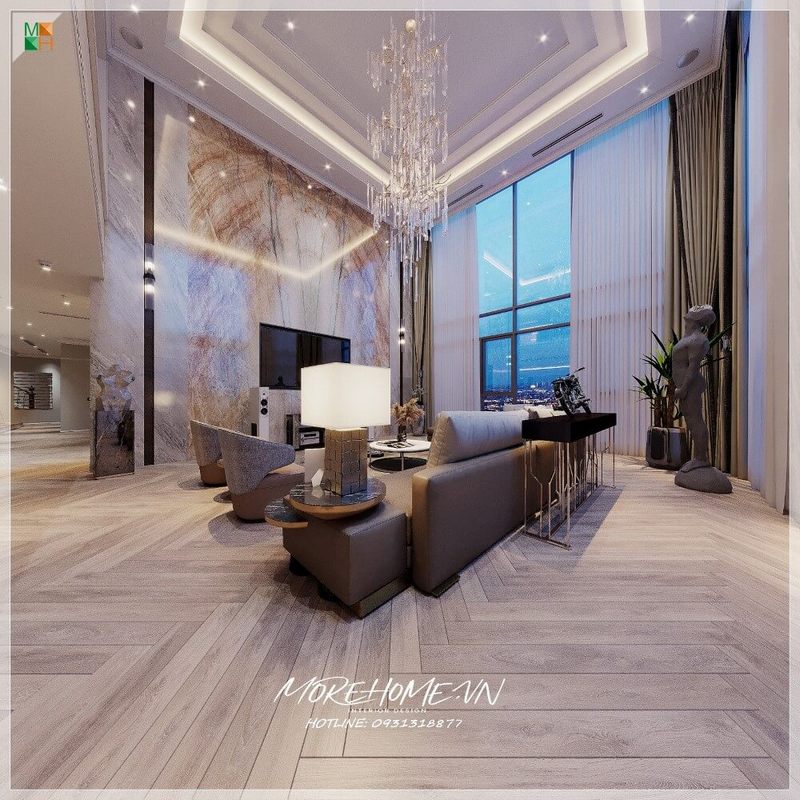 Thiết kế nội thất phòng khách sang trọng và đẳng cấp là những gì Morehome đã mang đến cho gia chủ tại biệt thự Hải Phòng.