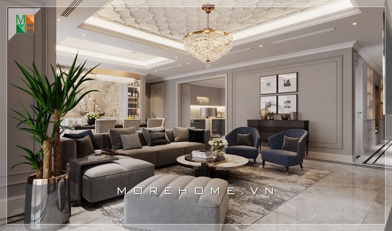 Thiết kế nội thất phòng khách chung cư, biệt thự tân cổ điển được kiến trúc sư đầu tư tỉ mỉ về cả đường nét và màu sắc, thể hiện được đúng cái "tôi" của gia chủ