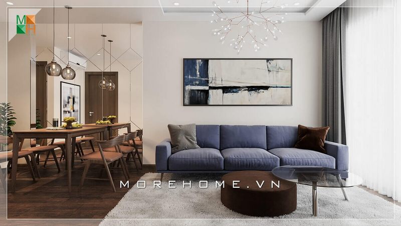 Trang trí nội thất phòng khách kề phòng ngủ đương đại đẹp cho căn hộ chung cư.