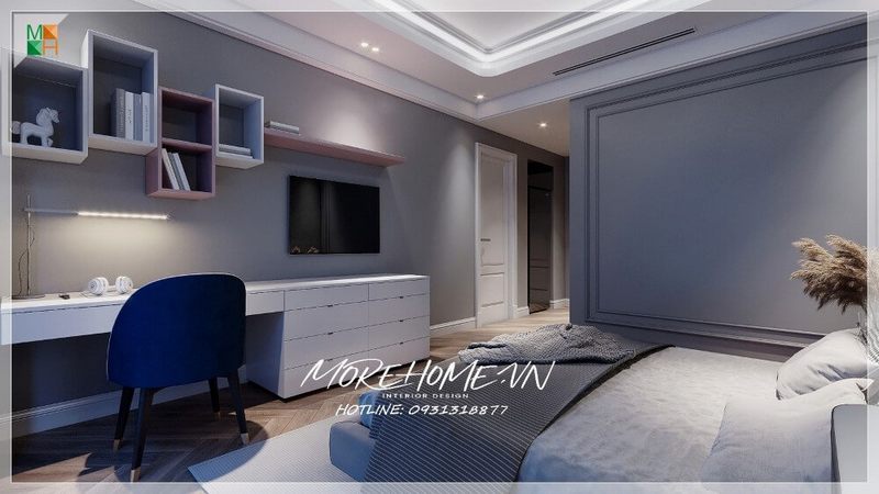 Kệ decor treo tường gỗ tự nhiên màu trắng hiện đại trưng bày sắp xếp đồ đạc sách báo gọn gàng không gian ngăn nắp.
